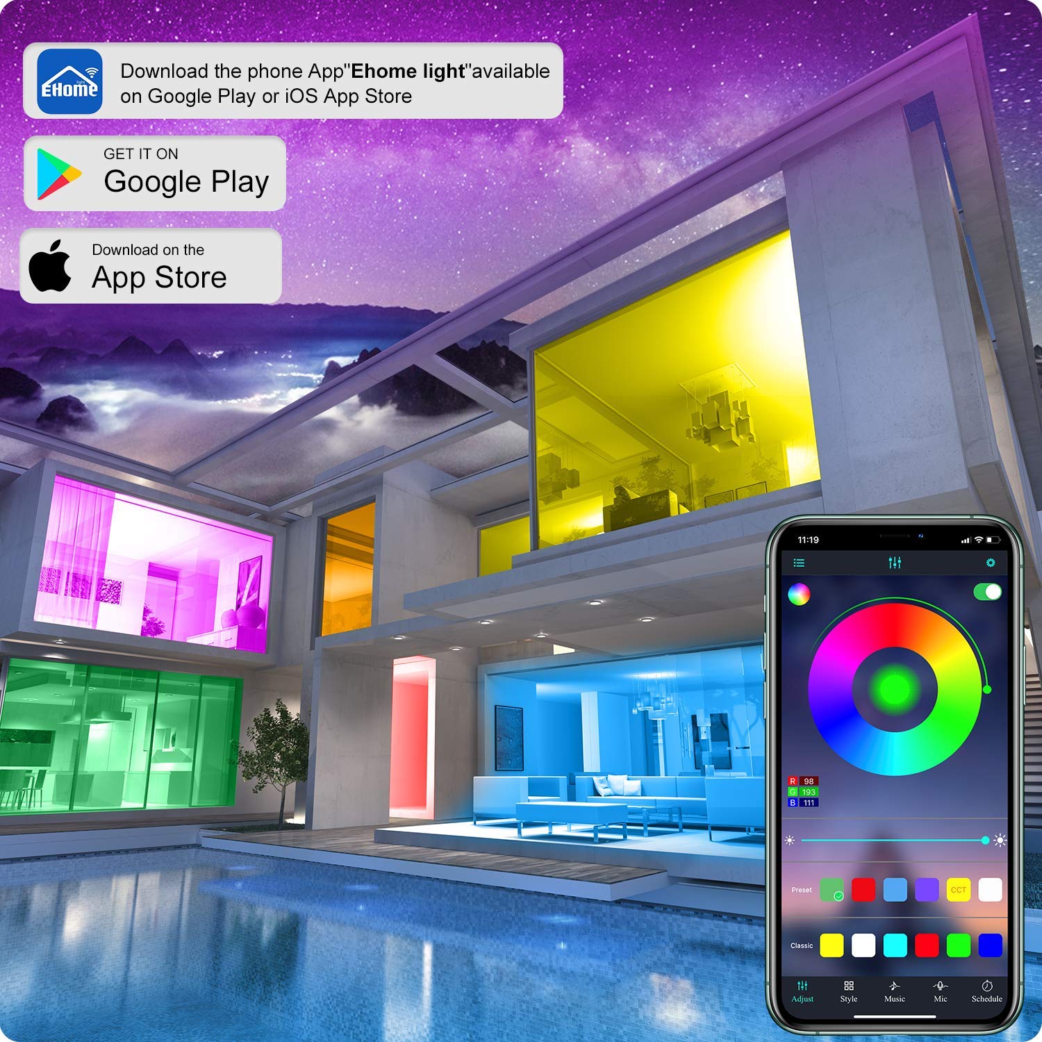 Color Changing Led Lights Decoration For Wall Bluetooth Controller Ehome Light App Rgb Led Tape Light Music Sync Timer Functions Led Strips Aliexpress